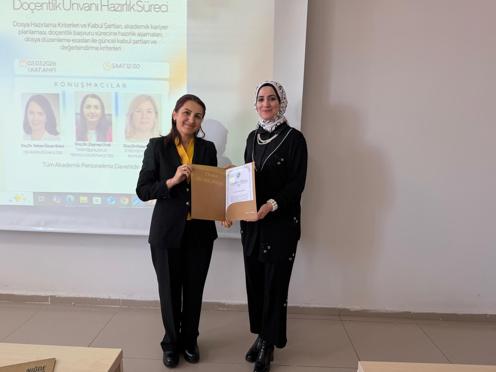 Niğde Ömer Halisdemir Üniversitesi Diş Hekimliği Fakültesi olarak Eğiticilerin Eğitimi Programı kapsamında hazırladığımız “Doçentliğe Nasıl Hazırlanılır? Dosya Hazırlama Kriterleri ve Kabul Şartları” başlıklı eğitim programımız, 02.03.2026 tarihinde 1. Kat Amfide gerçekleştirildi.