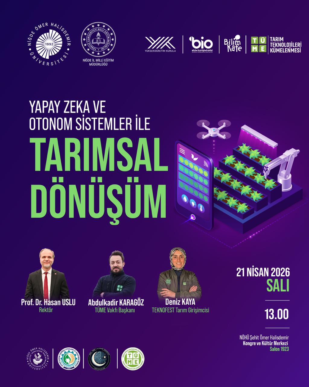 Everyone interested in the subject is invited to the "Agricultural Transformation with Artificial Intelligence and Autonomous Systems" event, which will be hosted by Niğde Ömer Halisdemir University.