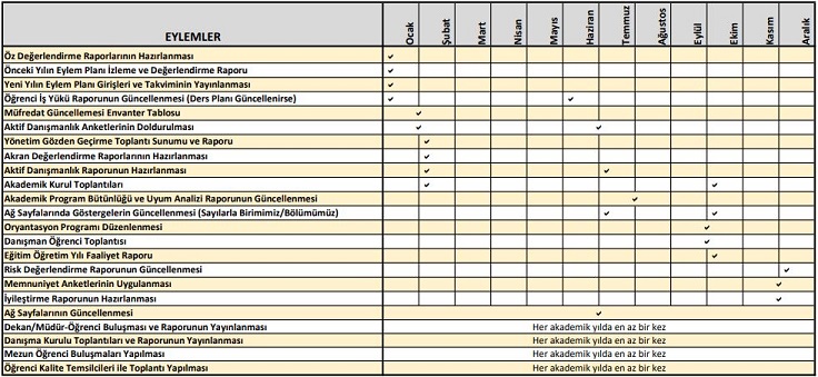 Eylem Planı Takvimi