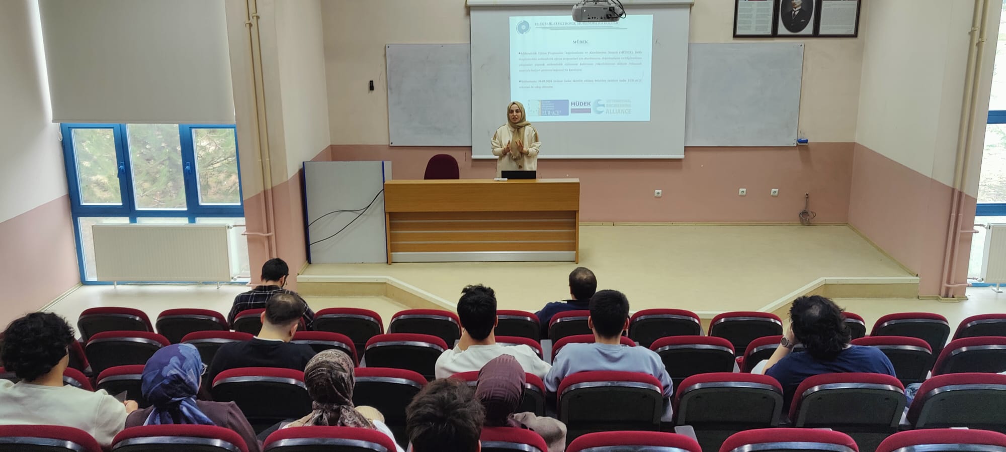 2025-2026 Eğitim-Öğretim Yılı Bahar Dönemi Oryantasyon Toplantısı, planlanan program dahilinde gerçekleştirilmiştir. Toplantıda bölüm öğrencilerine Elektrik-Elektronik Mühendisliği bölümüne ilişkin genel bilgiler sunulmuş; mezuniyet sonrasında değerlendirilebilecek istihdam olanakları ve kariyer imkânları hakkında bilgilendirme yapılmıştır. Toplantının son bölümünde öğrencilerden gelen soru ve görüşler yanıtlanarak oturum tamamlanmıştır.