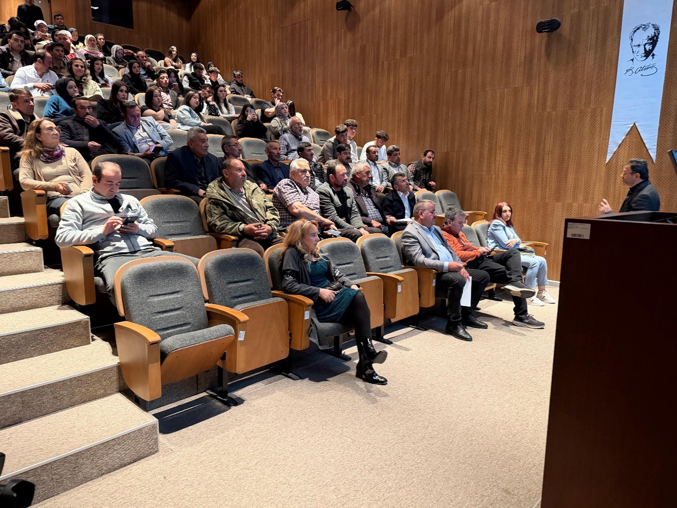 Programın açılış konuşmasını yapan Niğde Damızlık Koyun Keçi Yetiştiricileri Birliği Başkanı Sayın Şuayip DEMİRKOL bölgede küçükbaş hayvancılığın yeri, yetiştiricilerin karşılaştığı sorunlar ve hayvan hastalıklarına karşı koruma yöntemlerinin önemini vurgulamıştır. Ardından Ahiler Kalkınma Ajansı Niğde İl Koordinatörü Sayın Mithat AKGÜN bölgesel kalkınmada hayvancılık sektörünün önemine değinerek sürdürülebilir üretim, verimlilik artışı ve kırsal kalkınmaya yönelik bilgiler vermiştir. Fakülte Dekanı Sayın Prof. Dr. Ahmet ŞEKEROĞLU ise koyunculukta et ve süt üretiminin artırılması için üreticilere her türlü teknik destek ve eğitim konusunda katkı sunmaya hazır olduklarını ifade etmiştir.